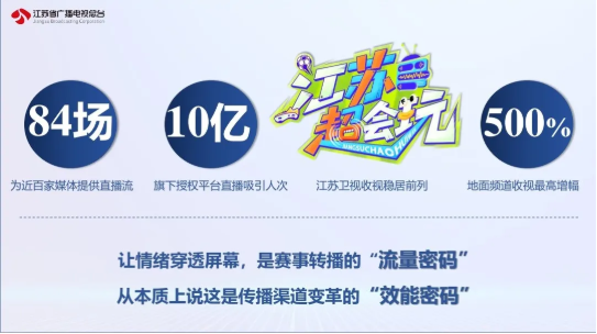 有網友稱贊“江蘇衛視開啟了足球直播新時代”,這份超出預期的認可,不是說用的頻道多、技術強,而是用戶感受到了那份“被懂”:懂大家想看到的比賽,懂大家想感受的賽場氛圍。截至目前,我們為近百家媒體提供了84場直播流,旗下授權平臺累計超10億人次觀看,江蘇衛視特別節目《江蘇超會玩》收視穩居前列,地面頻道收視最高增幅達550%。這組數據印證:讓情緒穿透屏幕,是賽事轉播的“流量密碼”,從本質上說,這是傳播渠道變革的“效能密碼”。