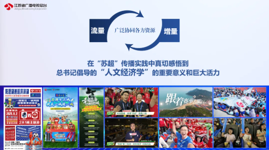 再看協同突破。今年初成立荔枝新聞中心,整合全臺的新聞力量,是江蘇臺系統性變革的重要舉措。去年底上線的視頻平臺ai荔枝,和江蘇衛視雙平臺一體化發展,有力支撐了“蘇超”大小屏聯動。在此基礎上,成立“蘇超”項目組,臺領導直接調度,把新聞團隊的“敘事力”、體育團隊的“專業力”、衛視團隊的“創意力”三股力量擰在一起,圍繞用戶需求協同創新,形成“1+1+1>3”的成效,這種組織架構變革所釋放的效益,正是我們推進媒體系統性變革的重要期待。